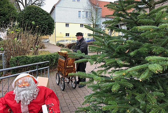Schausteller André Lotz spielte am 21. Dezember 2020 seine nostalgische Drehorgel im Garten.