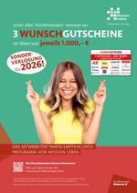 Unter allen Mitarbeiter*innen und Azubis, die im Jahr 2026 erfolgreich eine*n neue*n Kolleg*in gewinnen, verlosen wir im Sommer 2027 zusätzlich drei Einkaufsgutscheine im Wert von jeweils 1000 Euro!!! Sie machen als Tippgeber*in automatisch bei der Verlosung mit:
