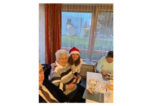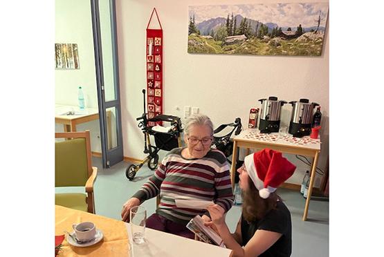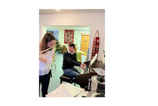 Musikalisch wurde die Feier vom freiwillig Engagierten Ronald Will sowie Daniel Rumpf, dem Enkel einer Bewohnerin, begleitet. Beide spielten begleitend Klavier und Orgel. Als alle gemeinsam Advents- und Weihnachtslieder sangen, spielte Jannika Schneider Querflöte dazu (s. Foto oben).