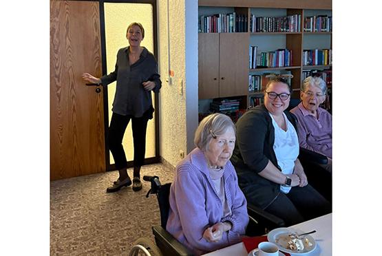 Im Wohnzimmer hingegen wurde bewusst eine kleinere, private Atmosphäre geschaffen. Eine Betreuungskraft spielte Harfe, ergänzt durch musikalische Begleitung über den CareTable. Das gemeinsame Singen stand im Mittelpunkt – getragen von Nähe, Vertrautheit und einem sehr persönlichen Miteinander.