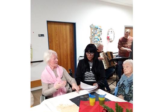 Im Wohnbereich A im Erdgeschoss begleitete ein Musiker mit dem Akkordeon das gemeinsame Singen. Weihnachtsgedichte und Geschichten wurden vom Sozialdienst vorgetragen und rundeten das Programm ab. Die musikalische Live-Begleitung schuf eine lebendige, herzliche Stimmung und lud zum Mitmachen ein.