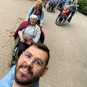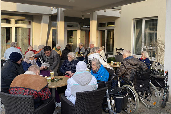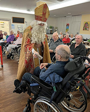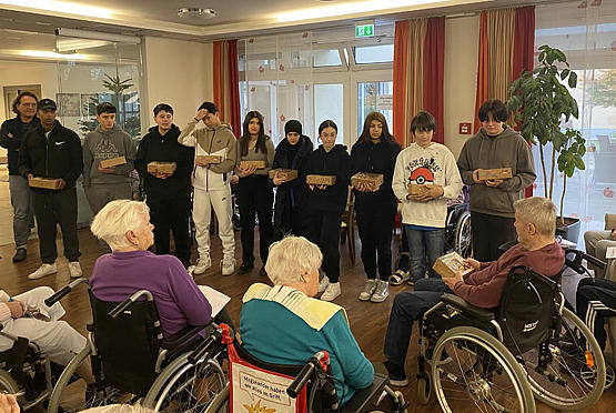 Am Nikolaustag 2023 besuchten Schüler*innen der Klassen M8c und M8d der Goetheschule Dieburg gemeinsam mit den Lehrkräften das Seniorenzentrum. Sie brachten Briefe und Plätzchen.