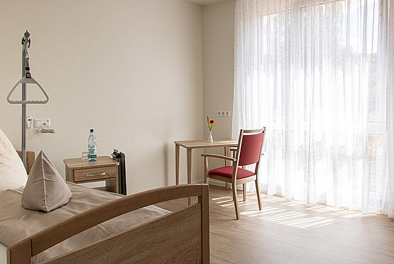 Das Haus Am See hat ausschließlich Einzelzimmer. Alle Zimmer sind mit Pflegebett, Nacht- und Kleiderschrank, Tisch, Stuhl, Gardinen und Beleuchtung sowie einem Duschbad ausgestattet. Außerdem verfügen sie über Schwesternrufanlage, Telefon-, Radio- und Fernsehanschluss sowie WLAN. Kleine Möbelstücke, Bilder etc. können mitgebracht werden, um das Zimmer individuell auszustatten.