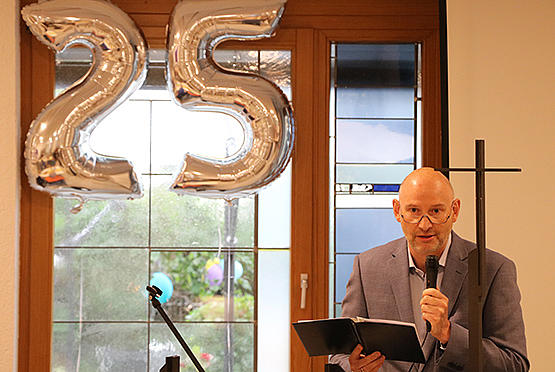 Von der Stadt Mainz überbrachte Sozialdezernent Dr. Eckart Lensch die besten Wünsche und verband diese mit der Hoffnung, dass das Martinsstift den Mainzer Senior*innen noch lange erhalten bleibt. Denn 25 Jahre seien ja noch keine Alter für so eine Einrichtung und Pflegeheime werden in Zukunft mehr denn je benötigt.