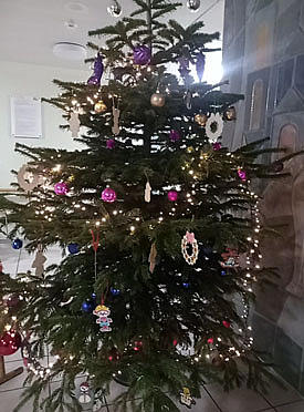 Eine soziale Organisation aus Hessen spendete 2021 Weihnachtsschmuck. Hier wirkten verschiedene Bildungseinrichtungen mit, die mit den Kindern verschiedenste Weihnachtsbaumanhänger aus Holz anfertigten.