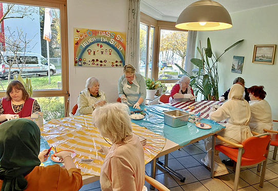 Zu Ostern 2023 wurden in der Tagespflege Eier gefärbt, Sträuße gestaltet; ein Osterquiz regte Gedächtnis und persönliche Erinnerungen an.