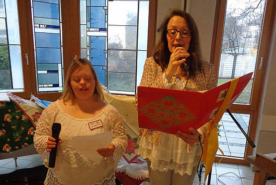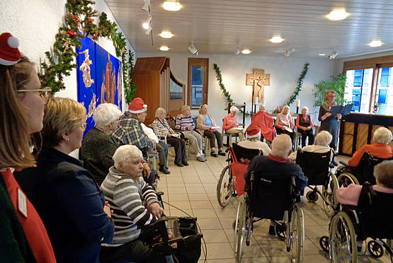 Adventsfeier in der Tagespflege, 2019: Leonie und Maria Hirschmann, Leiterin der Tagespflege (v. Links nach Re.)