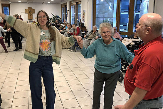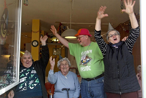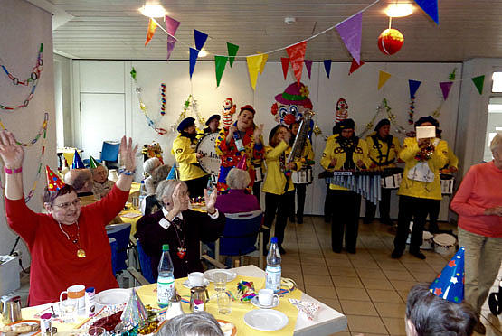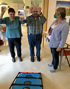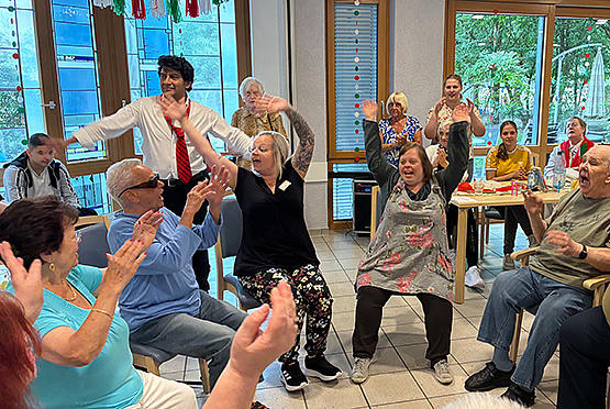 Die Bewohner*innen und Tagesgäste tanzten mit den Mitarbeitenden u.a. zu „Schön ist es, auf der Welt zu sein“