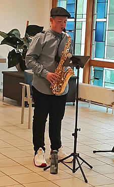 Am 26. April gab der 12-jährige Mika Gutenkunst in der Cafeteria ein Jazz-Konzert.