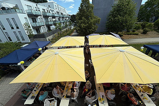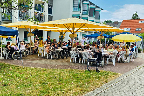 Bei strahlendem Sonnenschein kamen Bewohnerinnen und Bewohner, Angehörige und Ehrenamtliche am 4. Juli 2025 zusammen, um das Sommerfest zu feiern. Im Mittelpunkt stand das Motiv der Sonnenblume.