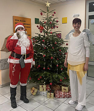 In der Adventszeit engagieren sich viele Menschen für das Haus Am Erlenbach. So kam 2023 u.a. der Nikolaus in Begleitung eines Engels und brachte Lebkuchenherzen aus dem Odenwald, die freiwillig Engagierte besorgt und liebevoll verpackt hatten.