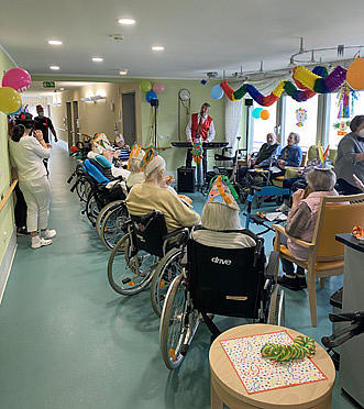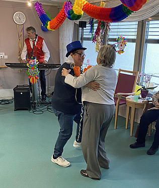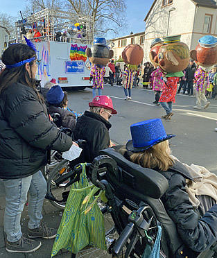 Das Team feierte 2023 Fasching mit seinen Bewohner*innen wieder ordentlich. Die Krönung des Faschingswochenendes war der Besuch des Lumpenmontagsumzug in Neu-Isenburg.