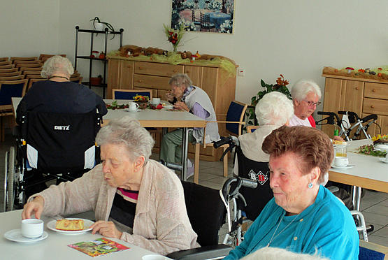 Die Bewohner*innen machten im September 2023 einen Rollstuhlausfluges zum benachbarten Haus an der Königsheide. Gemeinsam wurden selbstgebackene Waffeln gegessen, Kaffee getrunken und Lieder gesungen.