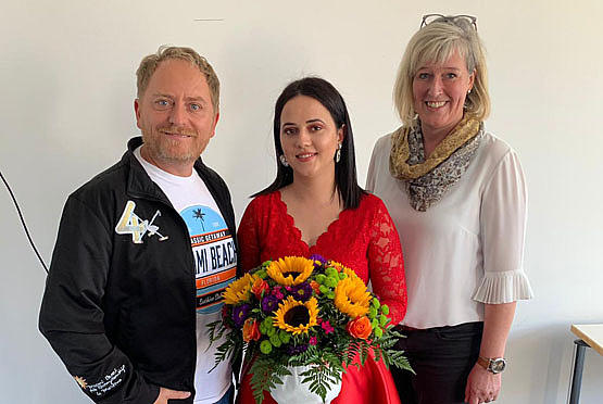 Nevena Bakal hat ihren Abschluss als Pflegefachkraft erfolgreich bestanden, die Feier an der Akademie fand im September 2020 statt. Wohnbereichsleiter und Mentor Herr Gottowik-Förster, Nevena Bakal und Einrichtungsleiterin Regine Kamps-Steiger (v. L. nach Re.)