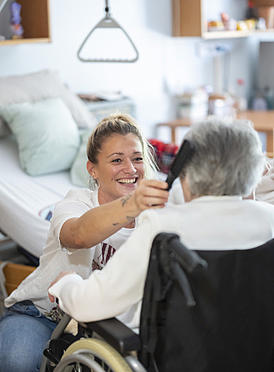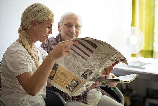 Wir arbeiten sorgsam und achten darauf, dass unsere Bewohnerinnen und Bewohner des Pflegeheims ihre Gewohnheiten – soweit wie möglich – beibehalten können. Wir begleiten sie liebevoll, sachkundig und mit Respekt, damit sie ein gutes und würdiges Leben führen können. Hier finden Sie unser Leitbild.