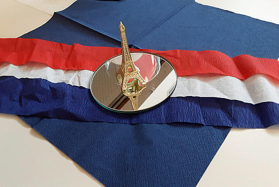 Die Tische waren schön in den Farben des Landes dekoriert.