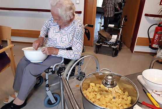 Ein hessischer Abend mit selbst eingelegtem Handkäs, Äbbelwoi und leckerem frischen Bauernbrot fand im Juli 2022 im Wohnbereich 2 statt.