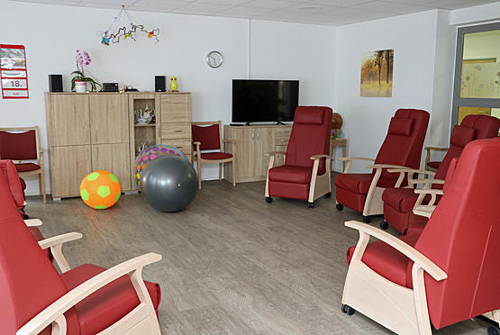 Die Tagespflege verfügt im Haus Jona über einen eigenen behaglich gestalteten Gebäudeabschnitt mit einer großzügigen und hellen Wohnküche, einem wohnlichen Gemeinschaftsraum mit Zugang zum geschützten Gartenbereich sowie einem Ruheraum. Toiletten, Duschbad und Gemeinschaftsflächen sind selbstverständlich barrierefrei gestaltet. Ein Garten sorgt für einen schönen Aufenthalt im Grünen.