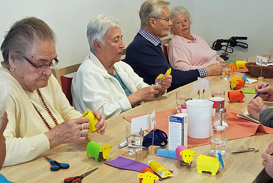 Mit unterschiedlichen Angeboten ermöglichen wir Anregung und Entspannung, trainieren Gedächtnis, Kommunikation und Beweglichkeit. Mit kreativen Angeboten und leichter hauswirtschaftlicher Betätigung fördern wir vorhandene Fähigkeiten. Die individuelle Begleitung vermittelt Geborgenheit und lässt Spielraum für die Selbstbestimmung.