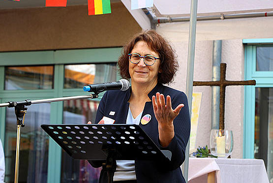 Mission-Leben-Geschäftsführerin Elke Weyand bei ihrer Ansprache zum Jubiläum