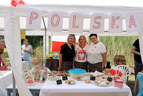 Bei einem gemeinsamen Mittagessen wurden über 100 Spezialitäten aus 24 Ländern angeboten. Hier der Stand von Polen