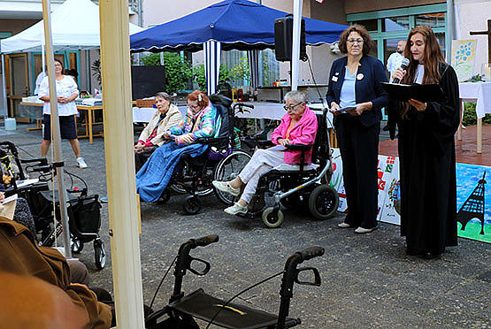 Elke Weyand und Pfarrerin Eva-Maria Bernhard hielten gemeinsam mit Bewohnerinnen und Bewohnern die Fürsprachen
