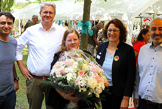 Die Ehrengäste: Adil Oyan, Kreisbeigeordnete des Kreises Groß-Gerau; Oberbürgermeister Patrick Burghardt; Jennifer Schnitzler, Elke Weyand und Bürgermeister Murat Karakaya (von links nach rechts)