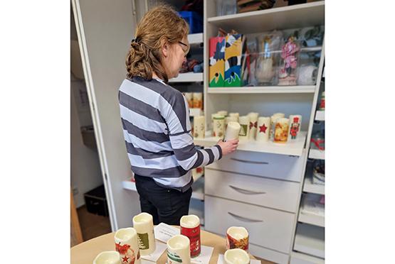 Simone Hörauf vom Sozialdienst mit für die Bewohnerinnen und Bewohner gestalteten LED-Kerzen