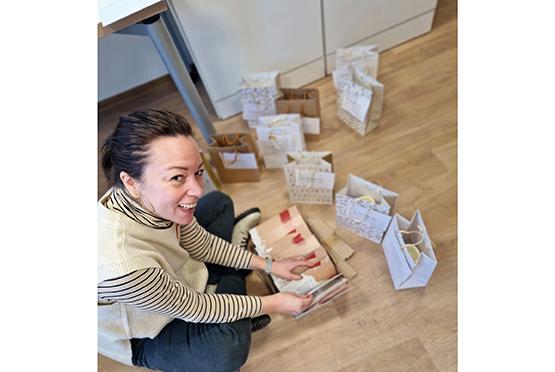 Christine Reisich vom Sozialdienst verpackt die Geschenke für die Bewohnerinnen und Bewohner