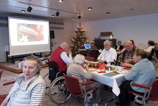 Um den unterschiedlichen Bedürfnissen und Vorlieben der Bewohnerinnen und Bewohner gerecht zu werden, fanden 2025 vier Weihnachtsfeste parallel statt. Hier: Feier im Wohnzimmer mit musikalischer Begleitung über den CareTable.