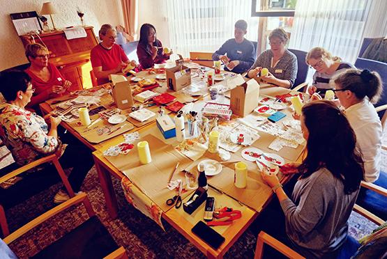 Das Team des Sozialdienstes gestaltete bereits im Oktober 2025 für die Bewohnerinnen und Bewohner individuell verzierte LED-Kerzen in Servietten-Technik.