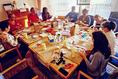 Im Festsaal wurde der Heiligabend in einem feierlichen, offiziellen Rahmen begangen: mit einer Pianistin und Beamer-Projektionen
