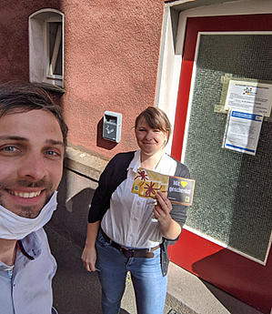 Günstige Lebensmittel waren zu Beginn der Pandemie oft Mangelware in den Geschäften. Edeka half Frauen in sozialen Notlagen, die in der Oase in Gießen betreut werden, mit Lebensmittelspenden. Am 27. April 2020 überraschte René Heeb, Betriebsleiter von Edeka, die Bewohnerinnen mit Einkaufsgutscheinen.